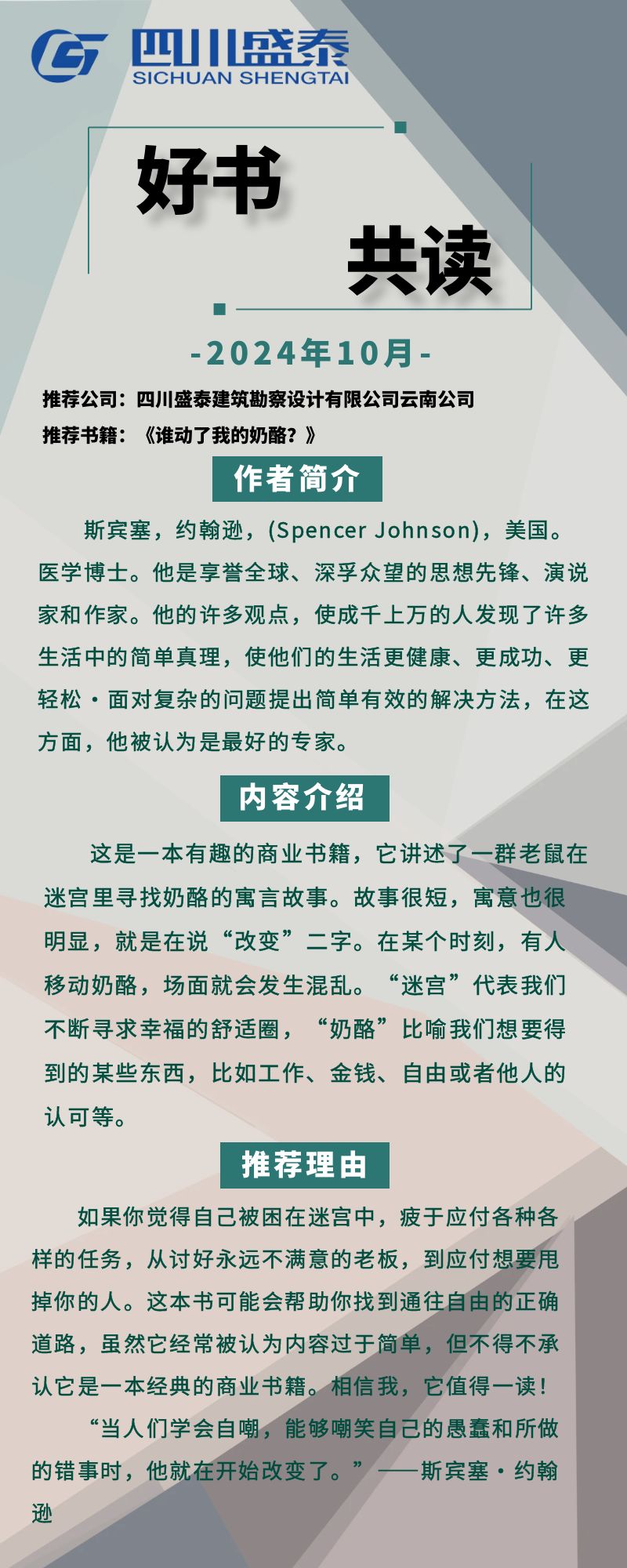 好书共读|《谁动了我的奶酪?》