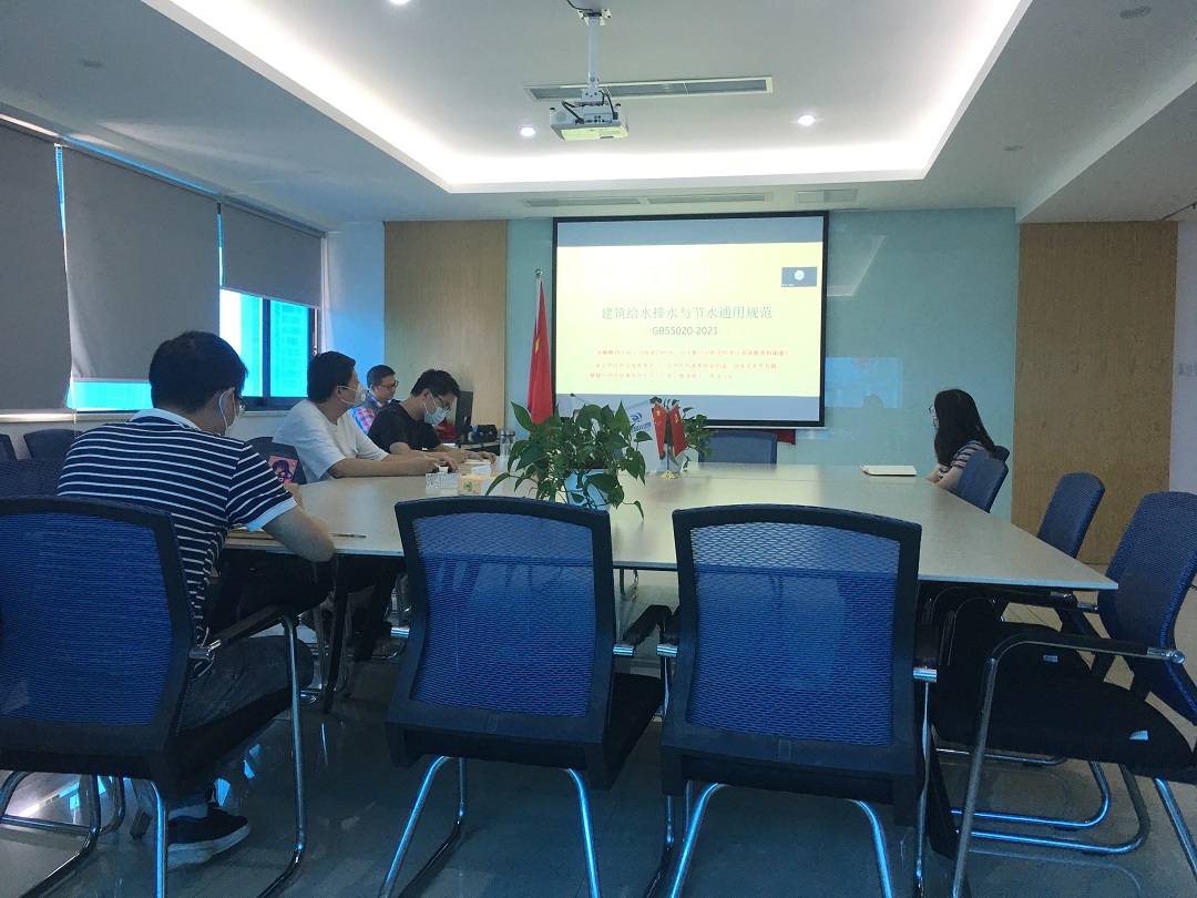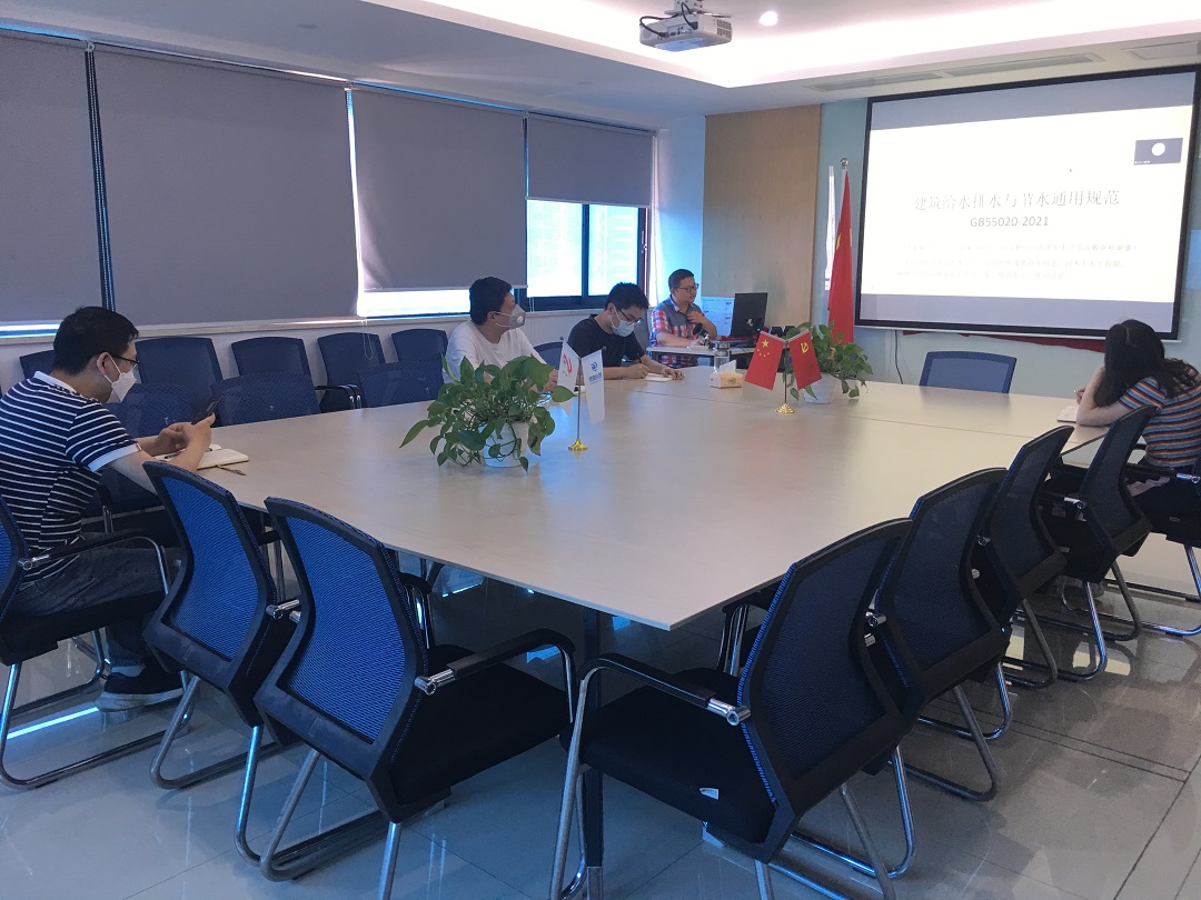 2022.8.20,在四川盛泰成都公司大会议室进行《建筑给水排水与节水通用规范》学习,本次会议由设备部给排水专业刘雷组织发起,相关专业人员积极参与其中。