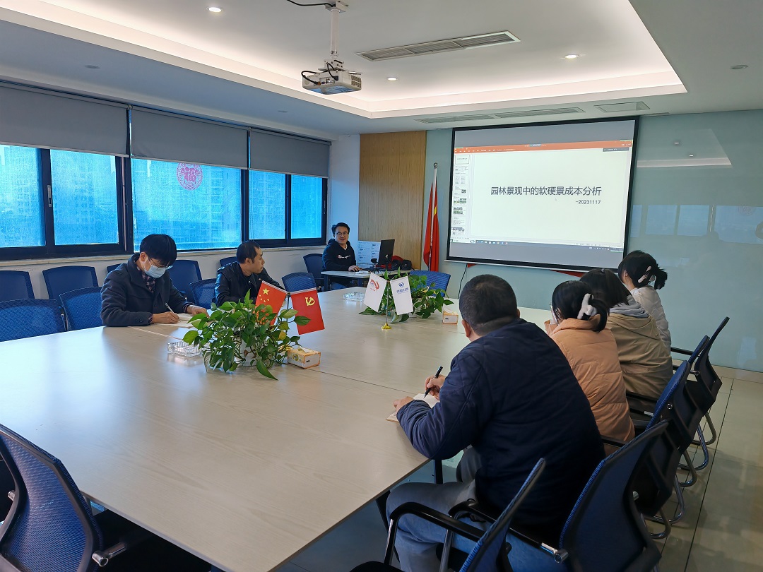2023.11.17,在四川盛泰成都公司大会议室进行《园林景观中的软硬景成本分析》学习,本次会议由景观专业符飞跃组织发起,相关专业人员积极参与其中。