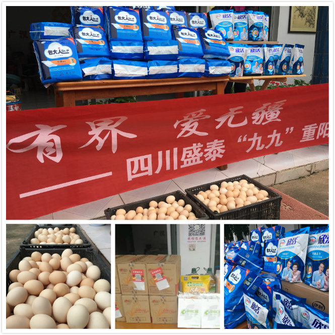 又逢一年菊花黄,又是一载重阳至。10月7日,四川盛泰董事长张自生、总经理黄天跃及部分员工,带着全体盛泰人的深情厚谊,再次来到广汉市众爱养老服务中心,为在这里颐养天年的爷爷奶奶们送去鸡蛋、牛奶及其他生活用品,给他们送上节日的问候和祝福。