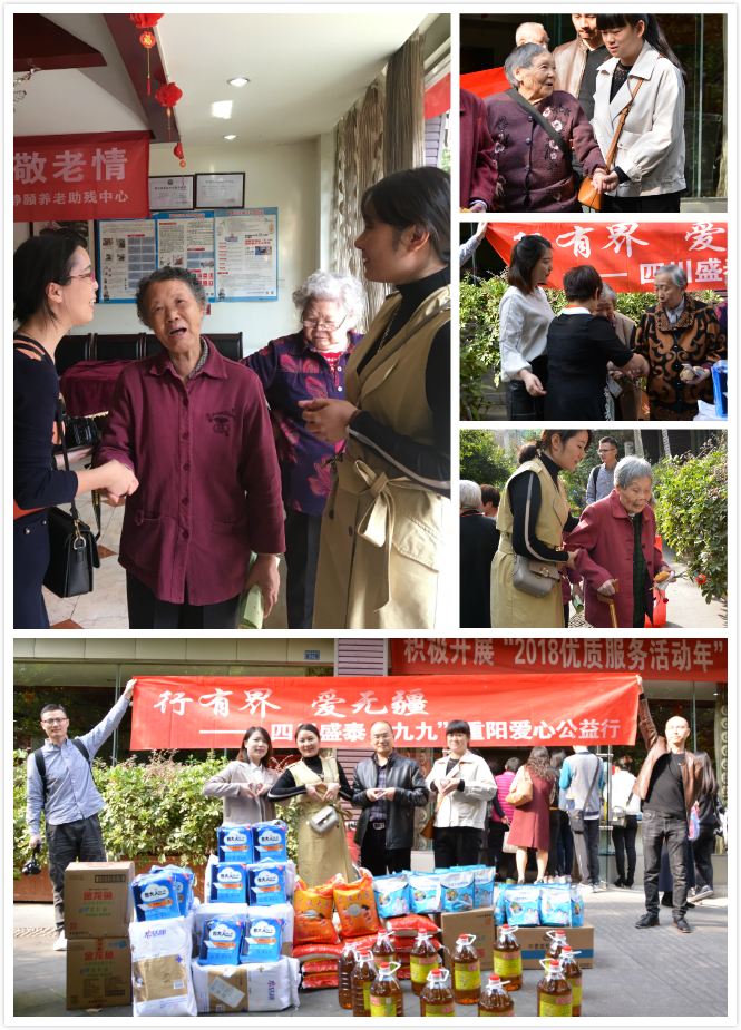 孟子·梁惠王上》有云:“老吾老以及人之老、幼吾幼以及人之幼”,中华民族早已把“尊老、敬老、爱老、助老”作为一项传统美德。今年“九九”重阳适逢祖国母亲70华诞,在这举国欢庆的日子里,在四川盛泰即将迎来建院40周年之际,四川盛泰“行有界 爱无疆”重阳公益行温暖再出发。