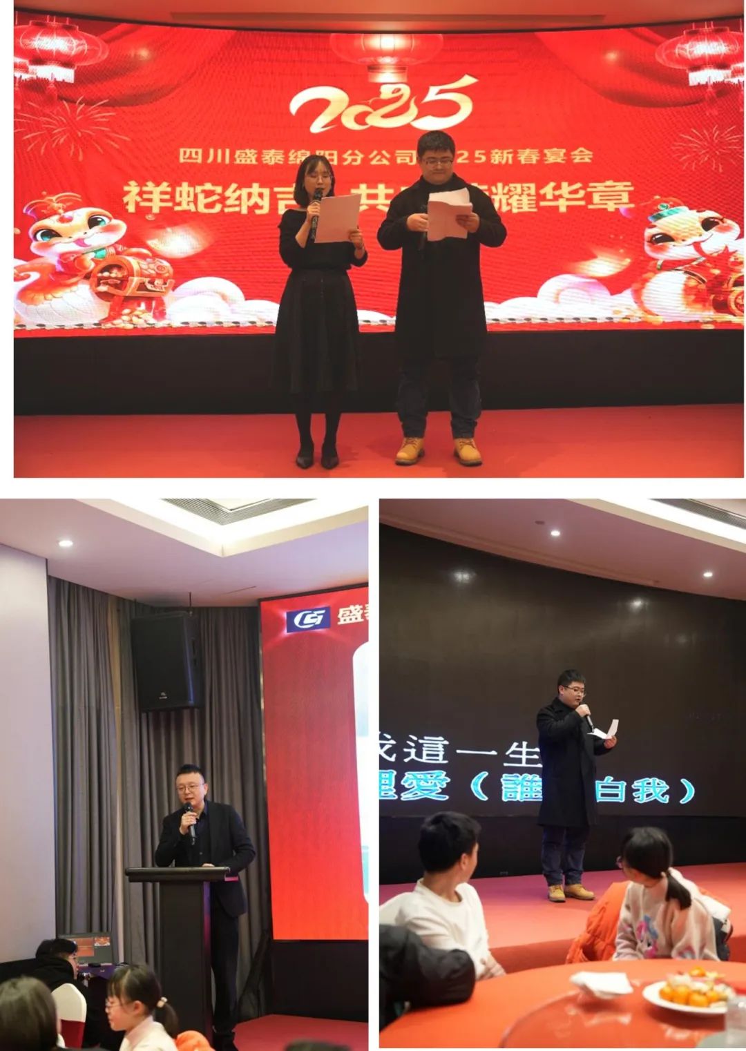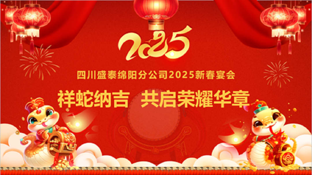 祥龙辞岁,祥光犹照奋进路;灵蛇纳福,瑞彩将映新征途。回首过去的一年,我们虽经历着风雨,但依旧目标笃定,未曾有丝毫退缩。2025年1月21日,四川盛泰建筑勘察设计有限公司绵阳分公司举行了以“祥蛇纳吉 共启荣耀华章”为主题的2024年总结表彰暨2025年新年酒会,灯光璀璨,笑声与掌声交织,这不仅是一场盛宴,更是对过去一年辛勤耕耘的致敬,对未来无限可能的期许。